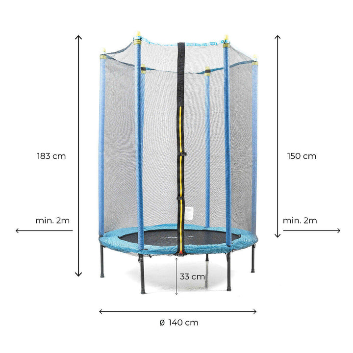 • Máxima seguridad y protección: nuestra cama elástica para niños cumple con todos los requisitos normativos. Dispone de una red de 150 cm de altura, recubrimiento acolchado de los muelles y los mástiles, y cremallera vertical con borde señalizado para su rápida identificación y acceso.
